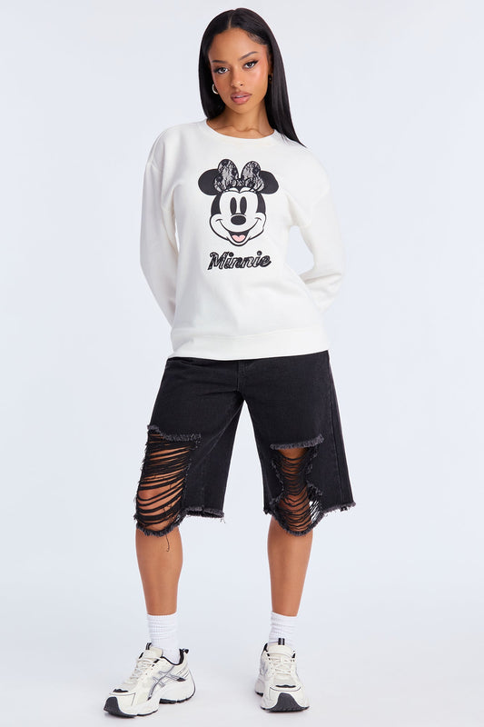 Senara Minnie Mouse Lace Fleece Crew Neck Sweatshirt - Cream